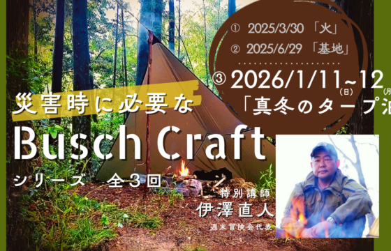 「災害時に必要なブッシュクラフトシリーズ」全3回 – 第3回「真冬のタープ泊」